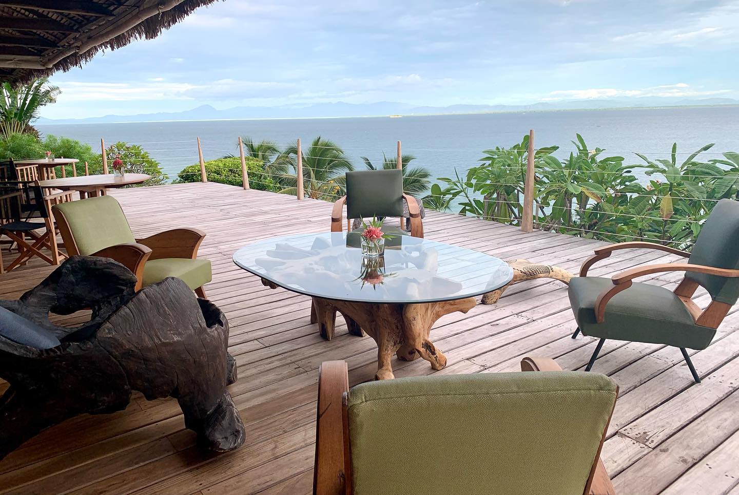 Set on a steep hill and surrounded by leafy vegetation, all eight lodges at Tsara Komba enjoy a perfect sea view from their verandas. Each of the six standard-sized suites come with a large bathroom and sleeping area with four-poster bed. The two family-sized suites come with a large lounge area. Each lodge is constructed from local rosewoods and sohihy and the roofs are thatched form local ravinala trees. In terms of their interiors, each lodger is slightly different from the next, the furniture having been sourced from Madagascan crafters, artists and antique dealers. Overall, the look and feel is very rustic-chic.